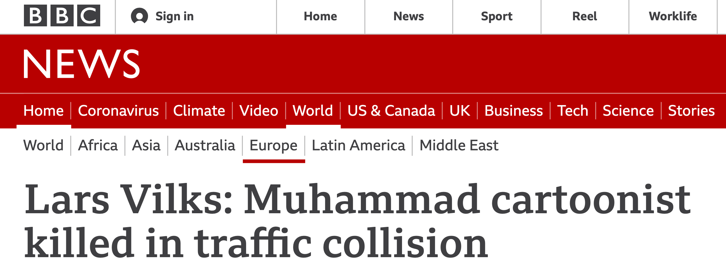 据英国广播公司(BBC)及《每日邮报》和报道,瑞典艺术家维尔克斯在当地时间3日一场车祸中丧生:事发当时,他所乘坐的警车与一辆卡车相撞,包括维尔克斯在内,车上三人当场死亡。