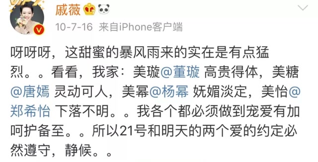 这里倒不是说戚薇虚伪,混这行就得有着非同一般的情商和交际能力,打好关系网,相辅相成才有利于助推事业。