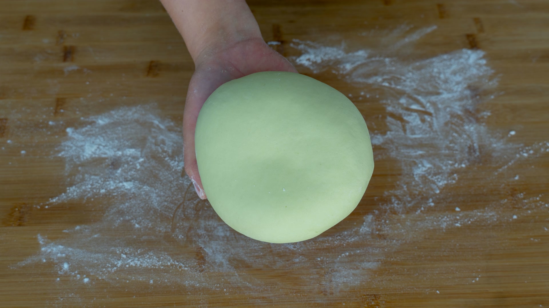 5、但留意不可过度揉面,面筋会揉断,而且揉面时间过长,面团已经开始发酵,会影响后面的操作,基本上揉一个馒头加上整型不要超过2分钟,揉着揉着就会慢慢变光滑,生胚就全部做好了;