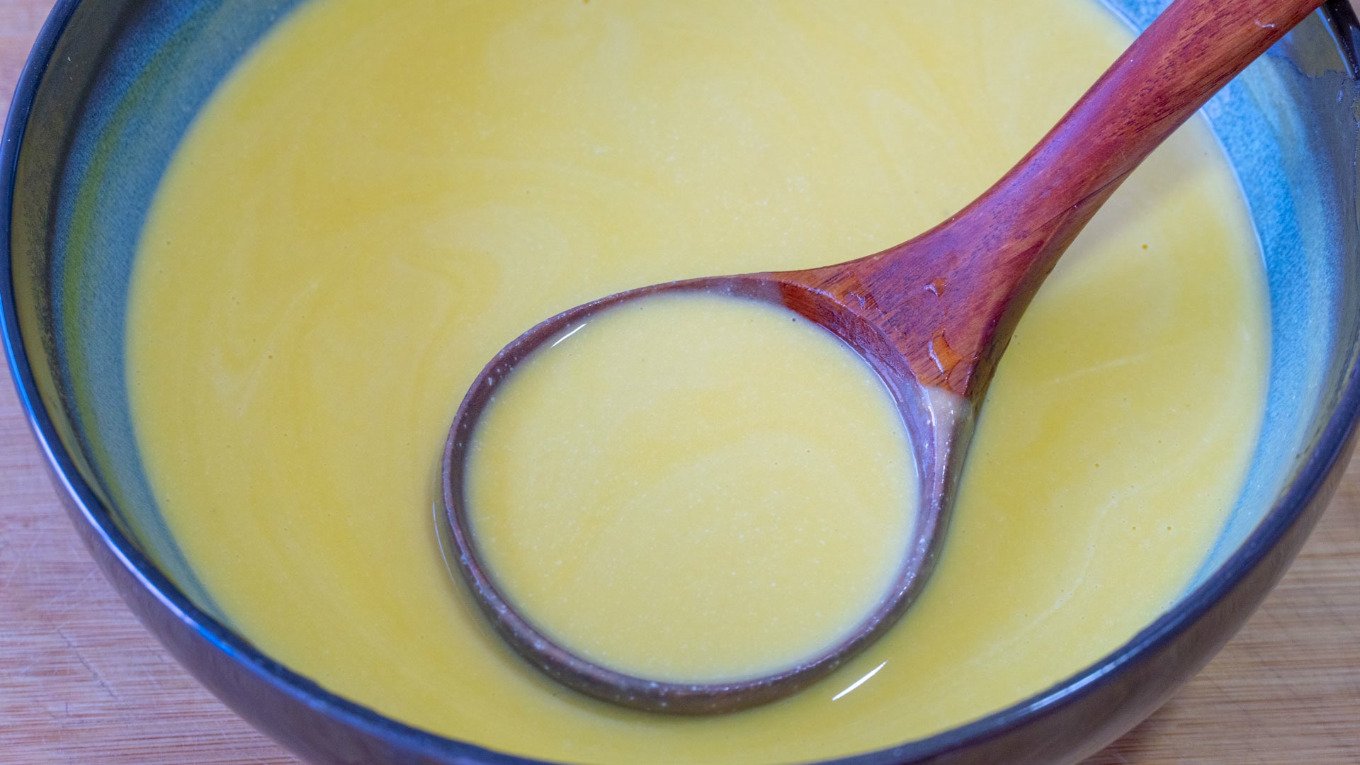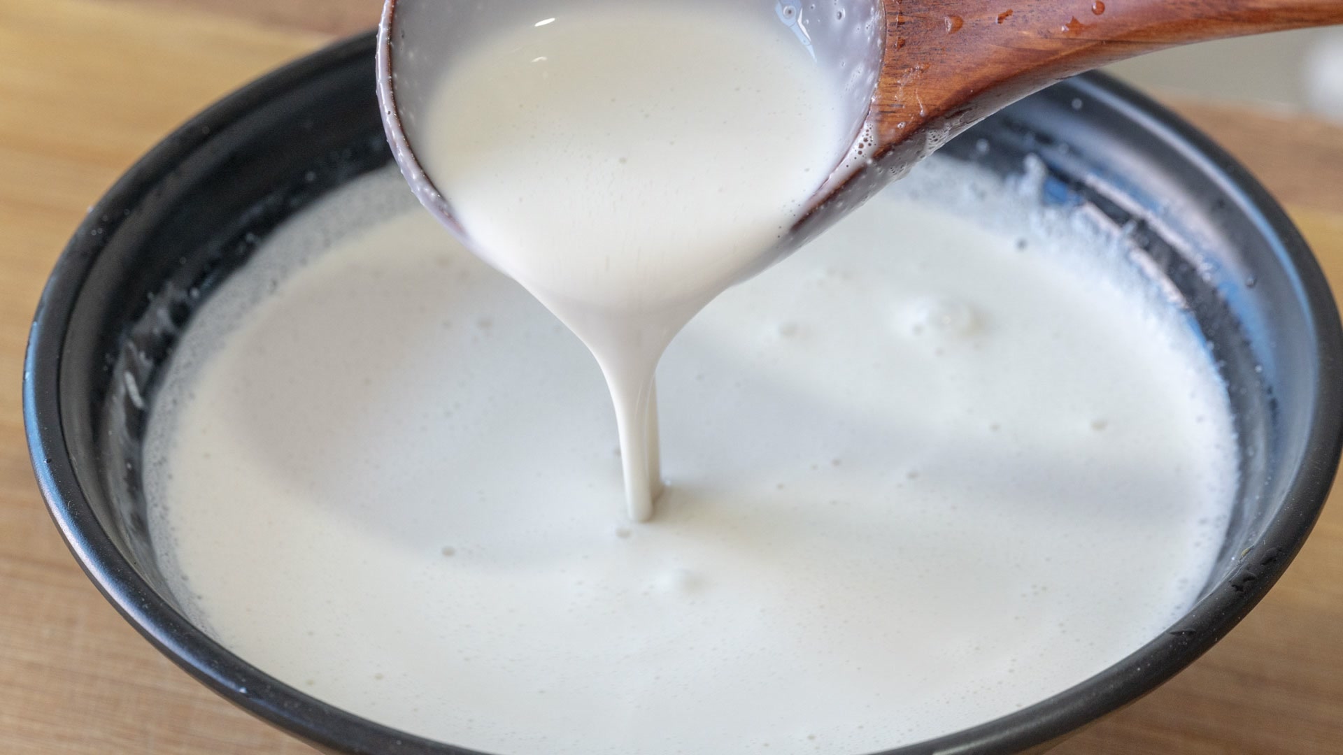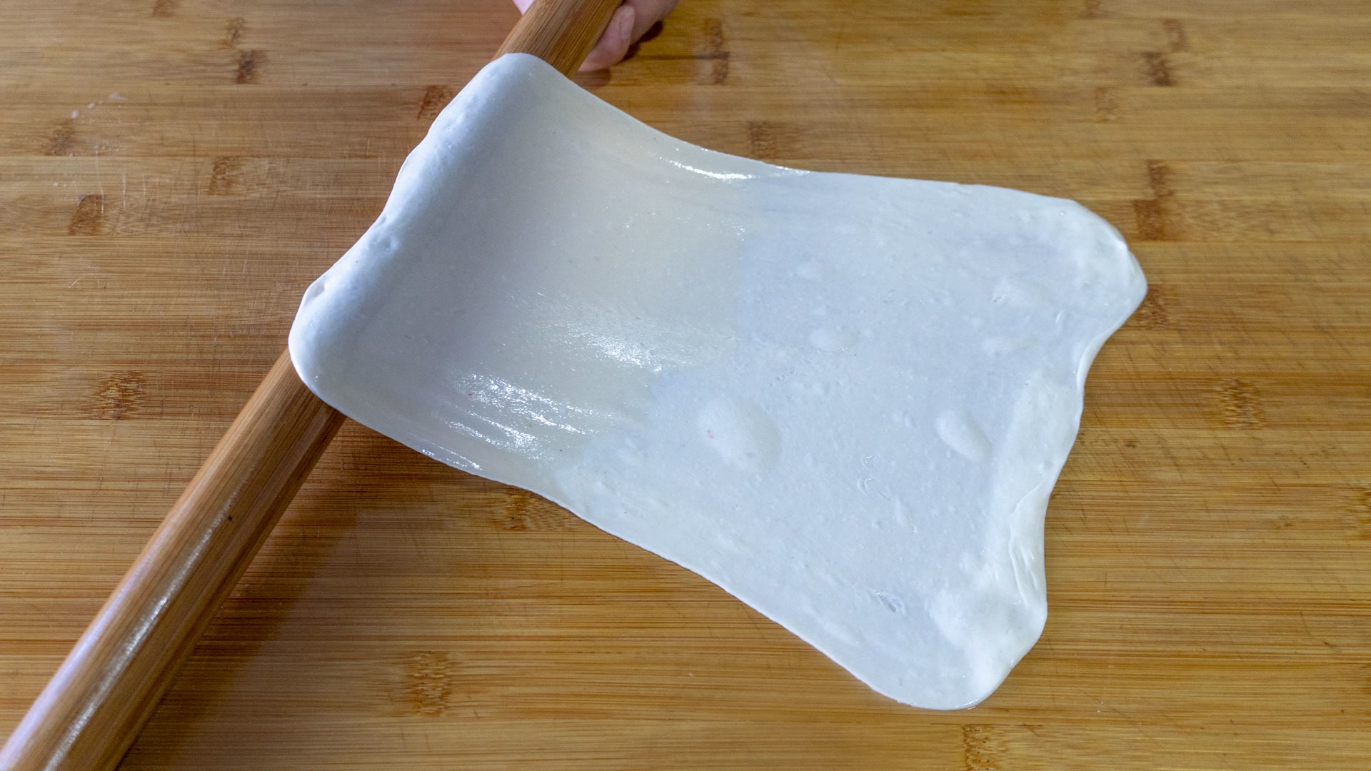 8、这个粉浆里面有牛奶和椰浆,不用烫浆也能凝固。