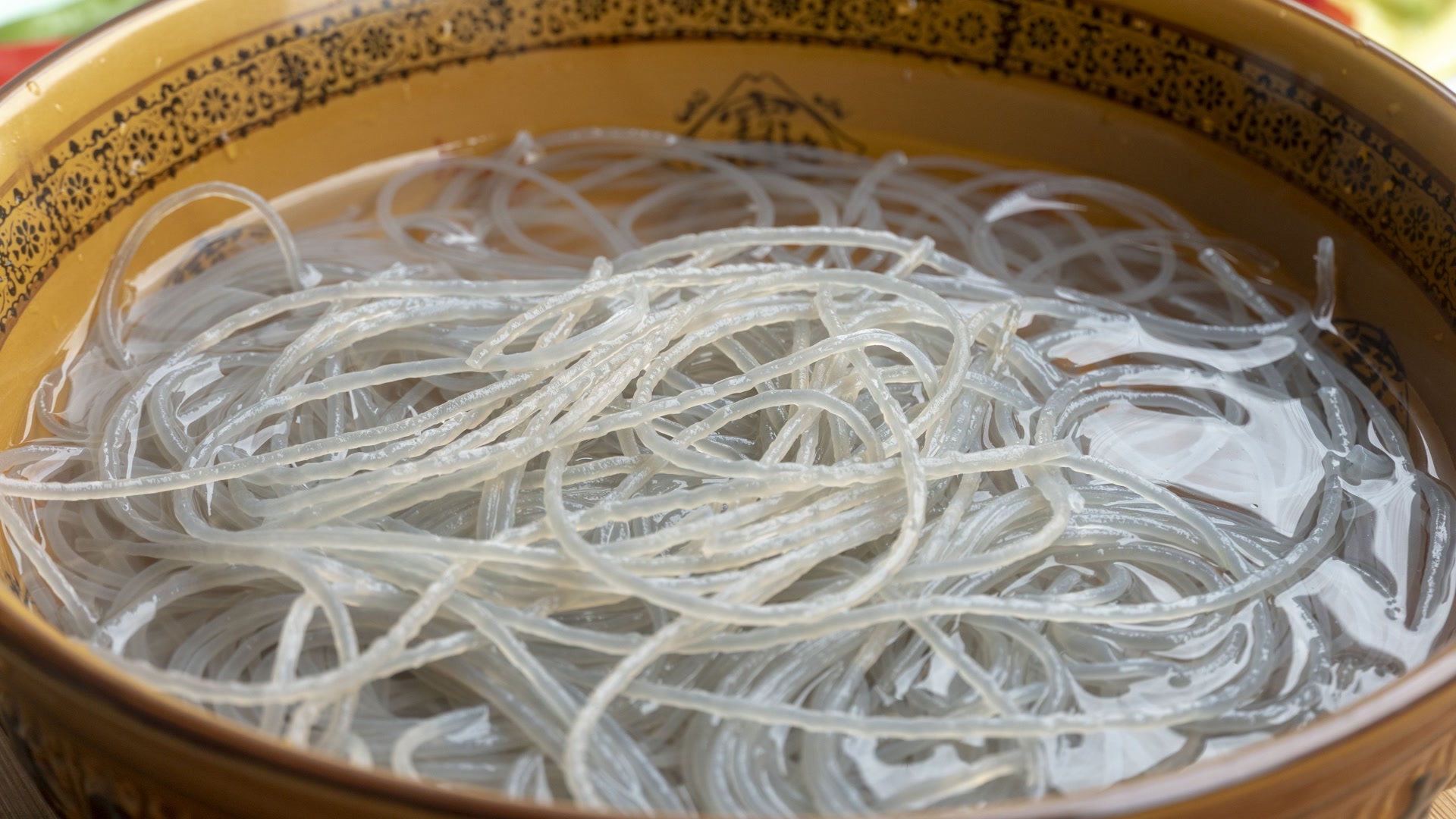 1、先来泡粉,红薯粉会比较的硬,用开水泡会更快速一些;