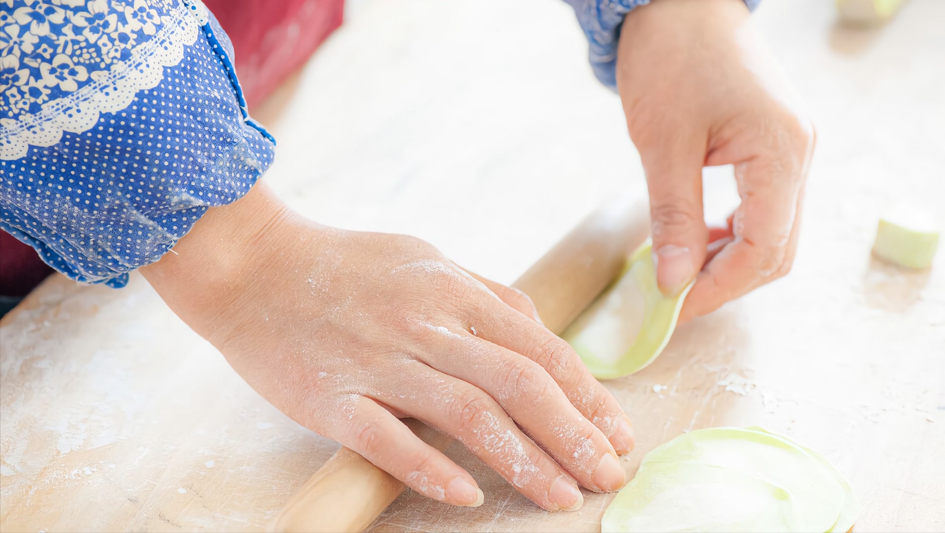 11、自己擀的饺子皮可以分成30个一组,擀好后就立马包起来,这样也不会黏在一起;