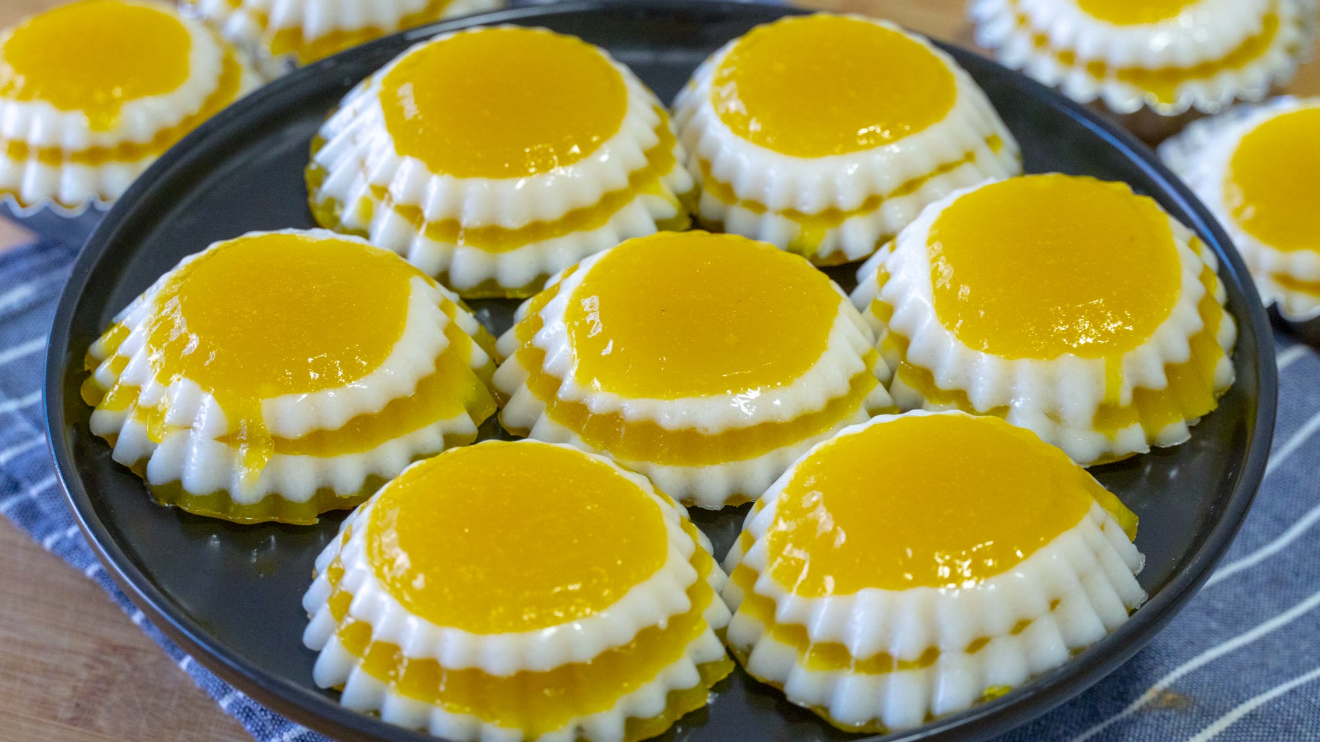 而且做出来颜值也很高,闻起来还有浓浓的椰香,甜度和韧度也都刚刚好,吃之前放冰箱冷藏一会儿,口感更冰凉爽口。